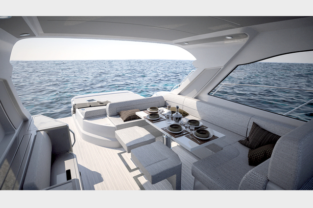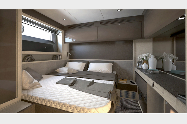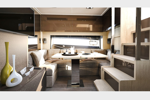 Το κυρίως κατάστρωμα έχει μεταμορφωθεί σε ένα μεγάλο σαλόνι, ενώ το κατώτερο κατάστρωμα προσφέρει τρεις αξιόλογες καμπίνες, συμπεριλαμβανομένης μίας πλήρης κεντρικής τραπεζαρίας με πτυσσόμενο τραπέζι, που αντιπροσωπεύει τα ξεχωριστά χαρακτηριστικά αυτού του καλύτερου στην κατηγορία του μοντέλου.