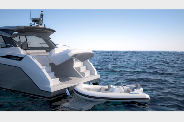 Το αρκετά μεγάλο γκαράζ μπορεί να φιλοξενήσει ένα βοηθητικό σκάφος μέχρι 3,25 mt (10 '8' ') και στο ανώφλιο την επιλογή ηλεκτρικού μπάρμπεκιου.
