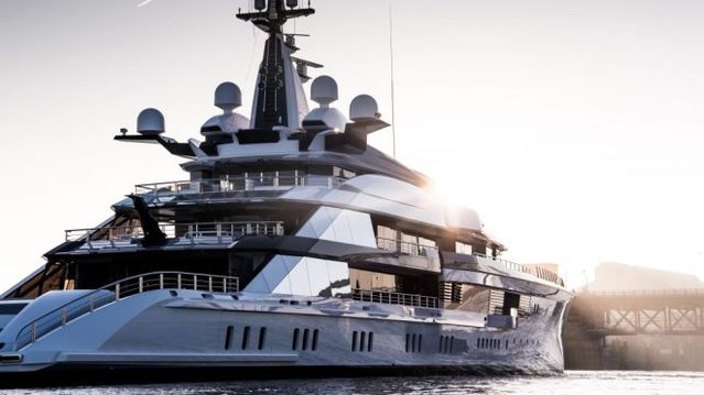 The design principles, says James Roy, managing director of Lateral Naval Architects, produce a “harmonious balance” among the yacht’s weight, power, technical areas and interior. On the exterior, Bravo Eugenia’s low profile and slender shape give the hybrid engines an aerodynamic boost and a badass look, enabled in part by its single-tiered engine room. Traditional engine rooms usually need two tiers, eating up cabin or deck space. This yacht’s single-level example allows more space for guests. Oceanco has created some of the world’s most impressive bespoke yachts, including recent launches such as 295-foot Dar, 350-foot Black Pearl and 361-foot Jubilee (recently sold to Stan Kroenke and his wife, Ann Walton, for $310 million). And Alfa Nero, Oceanco’s 2007 launch, was one of the most recognized yachts of its time.