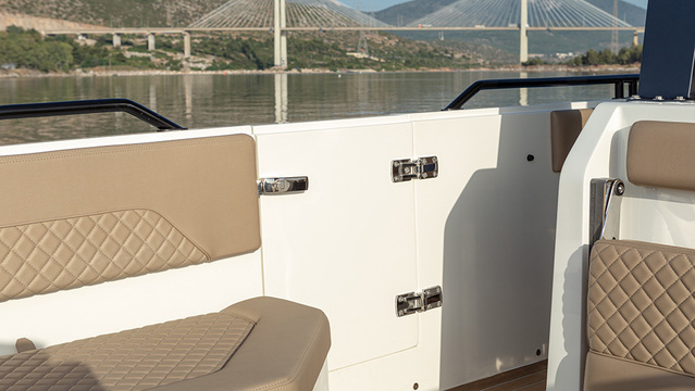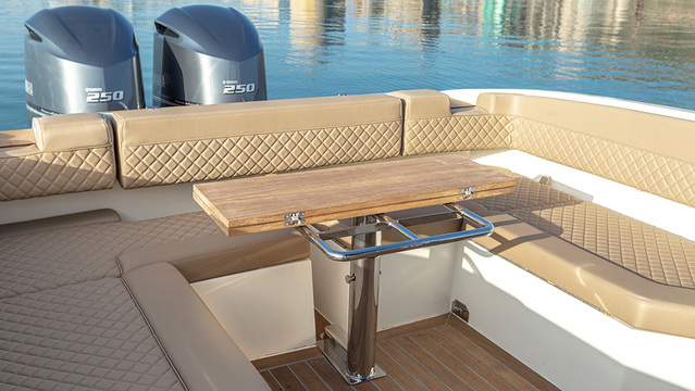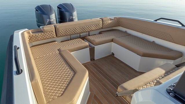 It is available with both inboard and outboard engines (2 x 370 hp) depending on space, preference and intended use.