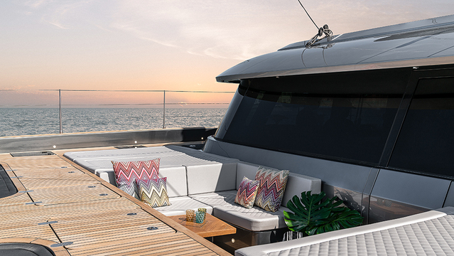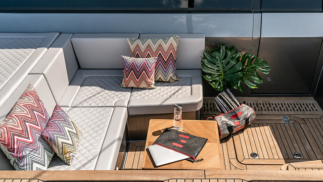 The luxuries of which Piekarec speaks are bountiful, from the aesthetics to the experiential. The generous interior—the boat sleeps eight guests over four en-suite cabins—is finished in an array of opulent materials: Think Carrara marble, Burmese teak flooring and eye-catching Missoni fabrics. Meals will be served by first-class chef Marcin Nowicki—who trained at the prestigious Kurt Scheller Academy—and focus on sustainably sourced ingredients, like family-owned Antonius Caviar and biodynamic sulphite-free Redentore Prosecco. Meanwhile, the state-of-the-art toys—including electric Seabobs, a Fliteboard eFoil, Goccyle G3 electric bikes, paddleboards, wakeboards and diving equipment—promise more fun than a water park.