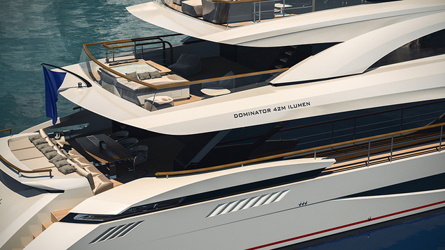 “I asked myself, ‘What would really push the boundaries and mark our 20th anniversary?’” says Angela Pernsteiner, managing partner/CEO of Dominator Yachts. “I called our chief engineer to say that we need a 42M Ilumen that can reach 19.5 knots and go from London to New York, my two favorite cities, with one tank—and the 42M Tri Deck transoceanic was born.”