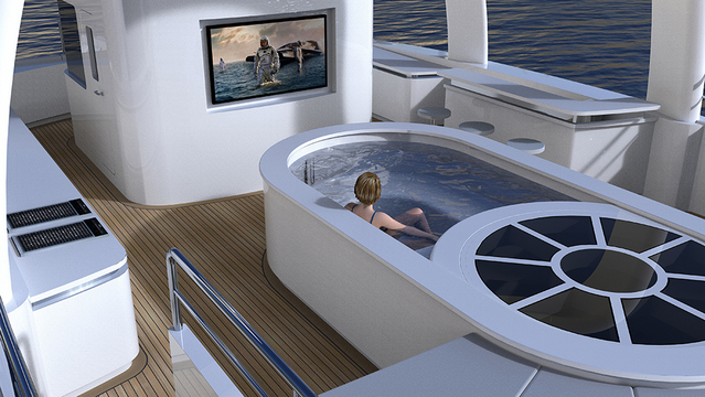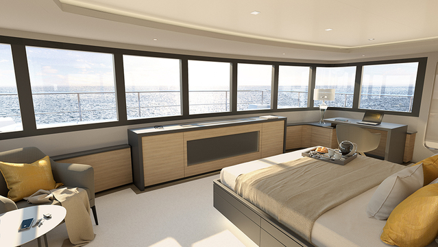 The floor plan can be customized to suit your specific needs—one option sees eight guests in four cabins; the other accommodates 10 people in five cabins, while the four-person crew is housed within two cabins. And the owner’s suite—which is situated on the main deck—affords 180-degree ocean views as well as private access to the foredeck.