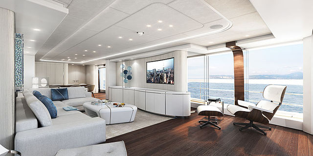 Frank Laupman of Omega Architects designed the new superyacht’s exterior, combining a shallow-draft hull with an efficient diesel-electric propulsion engine. Design features of Electra’s exterior layout includes a near-vertical bow, long waterline and extensive use of glass. Guests can make use of the outdoor sundeck and Jacuzzi, lounge areas forward of the wheelhouse and main deck aft, outdoor dining on the bridge deck aft and the fixed swim platform.
