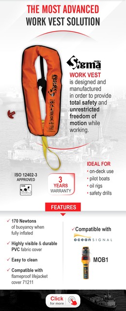 Sigma features one chamber which can be inflated via Lalizas manual operating head (20220, certified per ISO 12402-7) or via Lalizas auto operation head (20260, certified per ISO 12402-7) and bear oral inflation tube incorporating Lalizas valves (20610, certified per ISO 12402-7).