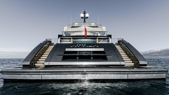 Officially the largest vessel the yard has ever produced, Attila delivers a powerful one-two punch of size and sophistication. With an exterior by Officina Italiana Design, the yacht sports elegant lines and artfully connects all five of its decks to give dual impressions of grace and flow.