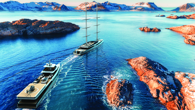“Concepts educate owners and help to steer them toward a certain design or designer,” says Steve Kozloff, whose Caribù concept—a polar-class sailing yacht equipped with an aircraft hangar that can fit three helicopters—aims to answer the need for a capable green explorer yacht.