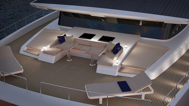 The stealth cruiser uses silent electric propulsion to deliver unlimited range without any noise, fumes or vibrations. She is self-sufficient, virtually maintenance-free and, of course, eco-friendly.