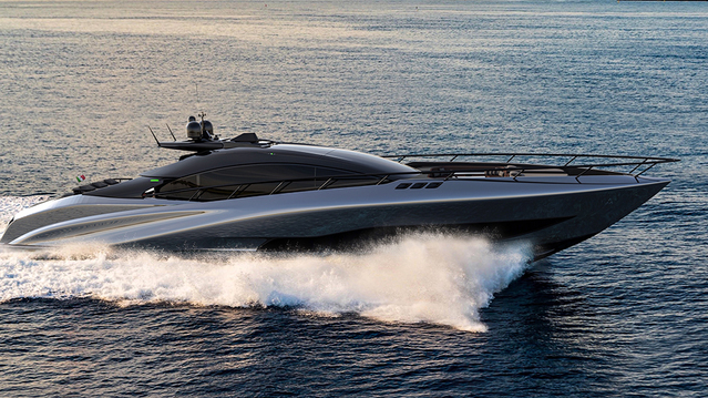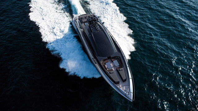 On top of that, nearly every inch of the high performance vessel has been designed with aerodynamics in mind. She features numerous air intakes for maximum flow, a striking overwater exhaust system with four carbon-fiber spoilers at the stern, as well as an aerodynamic hardtop. Fashioned from large glass panels, this hardtop would also allow guests to choose between sunshine and shade.