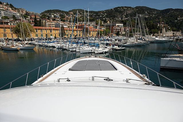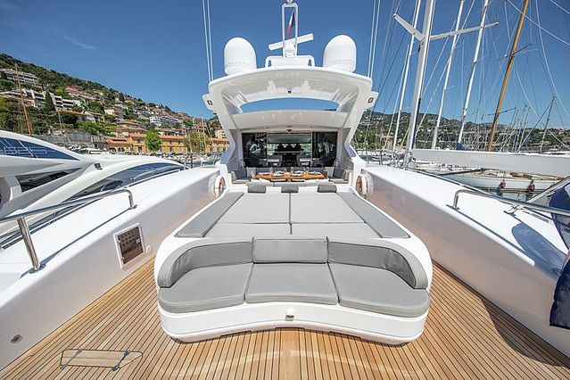Having recently undergone a maintenance refit in 2019, yacht Yalla for sale showcases a sleek exterior design highlighted by her retractable roof and spacious decks. Her interiors include a bright and spacious saloon, bar and dining room, all designed with a contemporary theme.