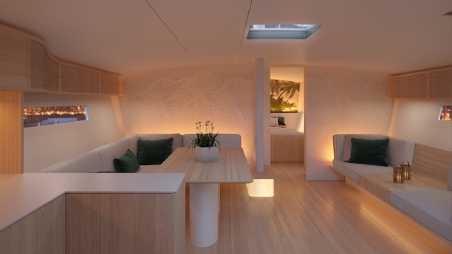 “The overall concept of the Baltic 68 Café Racer is to be straightforward and easy to use, with simple controls and ease of sail handling,” says Hawkings. “We are in discussions with several potential clients who appreciate the environmental approach of the project, the day sailer concept, the performance potential and the overall look of the boat.”