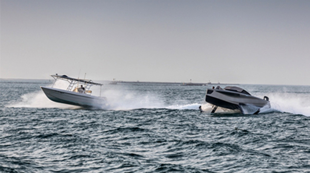 When placed side-by-side with a conventionally designed boat, the FOILER difference is clear: no skimming, no slamming no rolling.