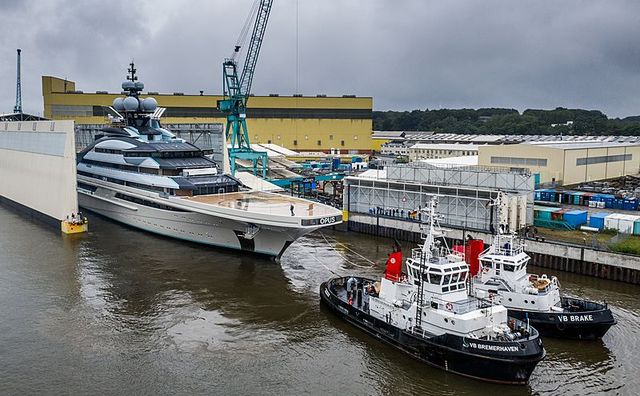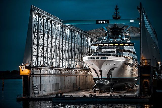 After an outfitting period that lasted just over 12 months, the highly-anticipated 142m Lürssen project Opus launched outside Bremen today. Opus is the first vessel to have been launched from the builder’s newly upgraded floating shed at its facility in Vegasack.