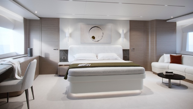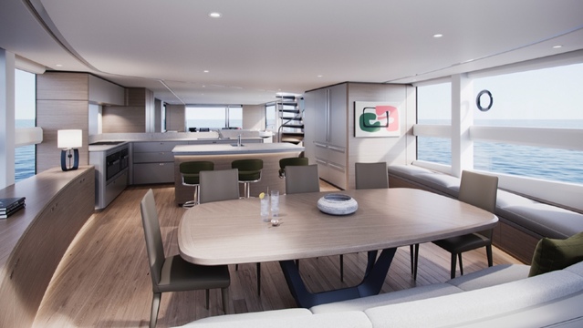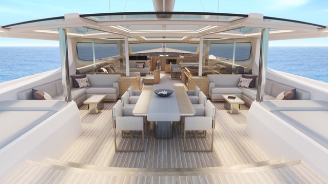 There were even larger modifications to the interior. The designers decided to remove an internal helm and instead made the helm on the top deck the primary station for driving the yacht.