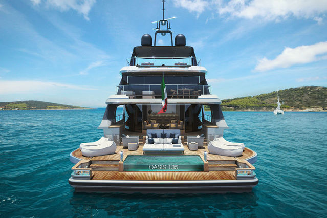 Measuring 40.8 metres in length, the Oasis 40M offers an impressive outdoor setup with an expandable beach club area complete with infinity pool.