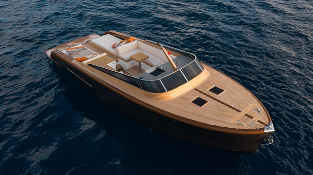 Both generations of vessels share timeless, elegant looks but are separated by decades of technology. The Heritage 9.9 came from a general concept by Nauta Design, with Studio Names providing the naval architecture. This highly customizable yacht—which comes either in open or hardtop versions—uses a patented construction technique called Wood in Tech Skin (WTS) that combines solid mahogany planks encapsulated with epoxy-infused carbon fiber. The boat’s frames are made of strong, lightweight ash with an epoxy saturation. Maestri opted to keep the wood from the hull visible on the interior to celebrate its beauty.
