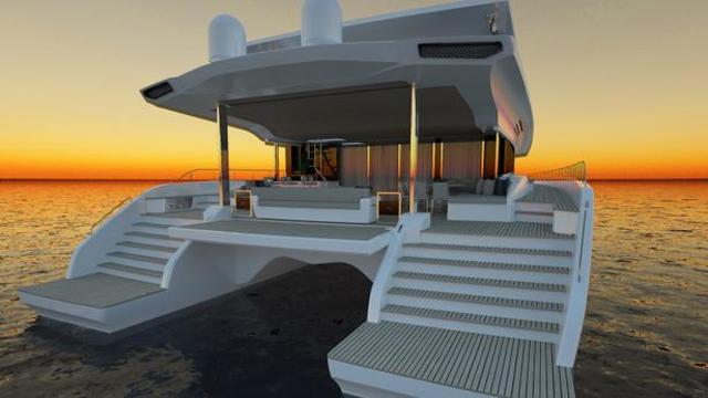 The yacht will be entirely solar powered, enabling an unlimited cruising range and noise and fume free navigation.