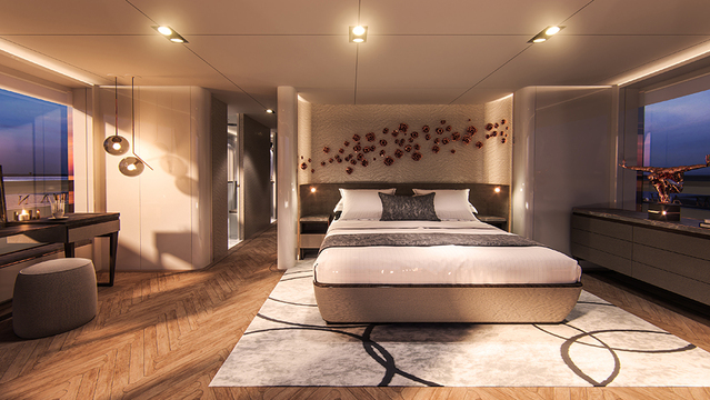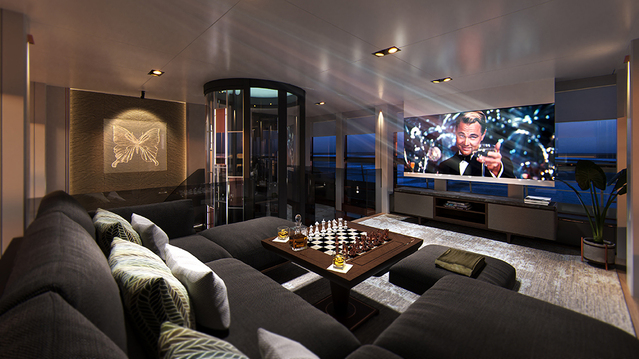 Vripack also found a way for the owner to appreciate the yacht early in the design phase. A full-scale, virtual-reality version revealed its proportions and size. The experience let the owner “walk” through the interior, looking around from every angle, so he could see how each area would feel and how light would flow. “Being Dutch, we love to play with light,” says Bart Bouwhuis, co-creative director of Vripack. “The huge windows play a significant role, but don’t underestimate the relevance of selecting just the right balance of light-absorbing and reflective materials. Every detail made a difference in the final design.”
