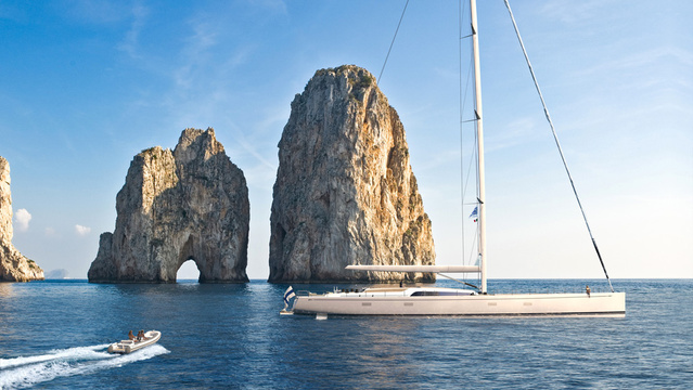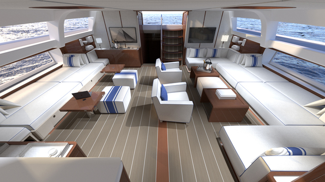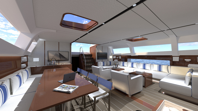 The hull and deck themselves are constructed from carbon fiber to shed weight and improve the boat’s performance. And if your desire of adventure is tough to sate, the boat can be equipped with a telescopic keel that can reduce its draft from 18 feet down to 11.5 fee, opening up ports and secluded spots where it simply could not fit otherwise.