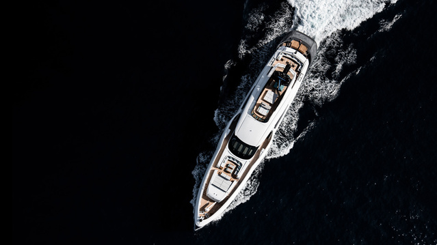 And those lucky owners, advertising moguls JR and Loren Ridinger of MarketAmerica.com, will get to take possession of their personal utopia after the yacht makes its splashy public debut on October 31 at the Fort Lauderdale International Boat Show. (Which, for the uninitiated, is one of the biggest shows of the year—watch this space for an insider’s report from the docks later this month.) If you aren’t one of the few to have a golden ticket to board while it is docked in Florida, read on for a peek into its sweeping Enrico Gobbi–designed superstructure.