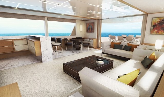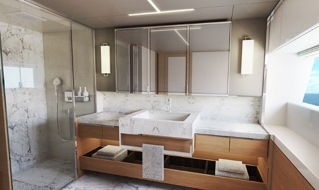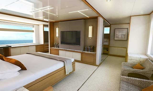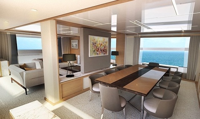 Johnson Yachts proudly unveiled the design of the Johnson 115, the builder's new superyacht flagship. The Johnson 115 will be a completely new hull carrying the luxury appointments of a world-class yacht. Johnson Yachts has been on the leading edge of the large-volume design revolution for years and the new 115 will showcase the company's leadership and foresight even further. With a layout of five or six staterooms and high levels of customization available, Johnson Yacht's flagship will draw the eye of superyacht connoisseurs in harbors around the world. “In recent years, we’ve been getting quite a few inquiries about building tri-deck superyachts,” said Andy Huang, president of Johnson Yachts. “It’s time for us to come up with a stunning new breed of yacht that will fascinate the world." The Johnson 115 is just such a yacht, and will make an unforgettable first impression with her noteworthy exterior lines. Designed by Bill Dixon of Dixon Yacht Design, she has a striking plumb bow that carries her volume forward. In addition, her tri-deck profile is inviting with large windows, all protected by bulwards artfully inlaid with glazing to preserve views from everywhere on board. With an interior design created by Design Unlimited, the Johnson 115 has social areas that center on a comfortable, welcoming saloon where guests and family can intermingle and enjoy the fresh air of the after deck through wide-opening aft bulkhead doors on pleasant days, then come together in the formal dining area forward. As with all Johnson Yachts, the finishes and furnishings are up to the owner's discretion and specification, and the builder pays close attention to material choices and furnishings that offer a level of sophistication worthy of a superyacht. The Johnson 115 has no shortage of gathering places, including an urbane skylounge, a versatile foredeck area, and an inviting beach club aft. The skylounge will have unparalleled views thanks to its elevated position and large windows. This upper level also will offer a similar seamless indoor-outdoor feel, opening wide to an open-air aft deck that also shelters the main deck aft. The foredeck area is designed for anything from secluded sunning to gathering friends and family together with a seating area that rivals those of much larger yachts. Aft is a large hydraulic swim platform to bring owner and guests closer to the sea. A transom garage opens to reveal a beach club for superyacht-style entertainment. The swim platform will accomodate a 16-foot (5-meter) tender athwartships, while a garage behind the beach club can ship an18-foot (5.5- meter) tender. A layout encompassing five or six staterooms will welcome a full complement of guests aboard, with the privacy of separate heads and berth arrangements at the discretion of the owner. Johnson Yachts has vast experience managing the engineering and mechanical aspects of the yacht so prospective owners merely have to concern themselves with choosing the look and feel of the spaces where they will enjoy their time aboard.