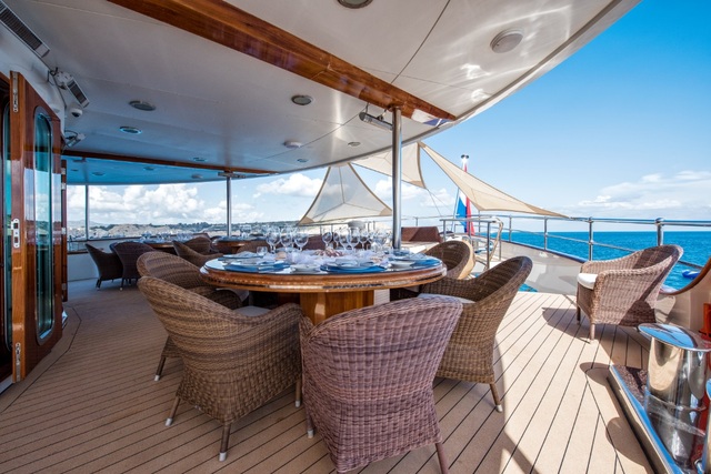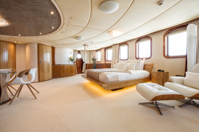 Sherakhan is also unrivalled in terms of onboard additions and luxury features. “She offers a look-out house on the sun deck and a large jacuzzi with glass bottom,” says Jan, “Her dining room sits in an atrium fitted with a table for all 26 guests, and features like the spa and the gym make guests stay onboard a true dream come true!” As if this isn’t enough, Sherakhan also boasts an 8m water slide, two 7.3m tenders and three waverunners.