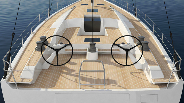 The deck may seem spartan when compared to those on motor yachts, with hot tubs and an abundance of lounging spaces, but it is built for efficiency and making sailing a breeze. Windows on the deck and around the coach roof let natural light in on the interior, which features a main saloon with a dining area and lounge clad in European oak. The cabin arrangements are flexible, though the standard arrangement features three staterooms, including the master cabin, which has a desk/vanity, king bed, and walk-in closet in some configurations.