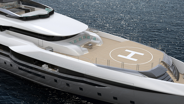 The Phantom also has a large helipad on the foredeck. “It’s integrated into the design, which is unusual for a boat this size,” says Rossi.