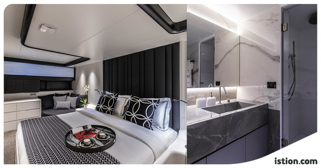 a complete rebuilt of all the en suite facilities with ceramic panels & corian, new contemporary artwork and modern detail, bringing the yacht to ‘’as new condition’’.