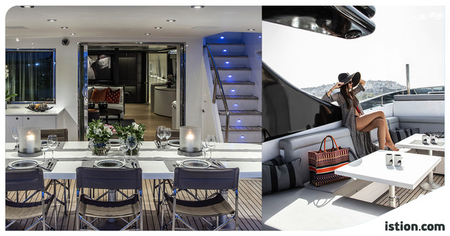 spacious interior and ample exterior space and enjoying the 5 star services of a truly professional crew - a perfect combination for an unforgettable cruise in Greece!