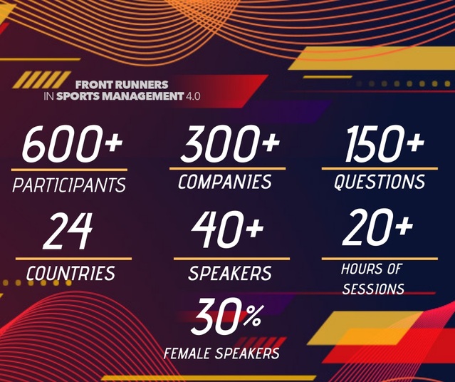 Πάνω από 40 επιφανείς ομιλητές, το 30% των οποίων ήταν γυναίκες,συναντήθηκαν στο Front Runners 4.0 με περισσότερους από 600 συμμετέχοντες από 24 διαφορετικές χώρες και πάνω από 300 εταιρείες, που σχετίζονται με την αθλητική βιομηχανία παρακολουθήσαν τις τελευταίες εξελίξεις στον χώρο του αθλητισμού αλλά και του αθλητικού τουρισμού.