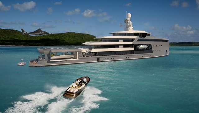 The high-tech hangar stows helicopters, tenders, dive boats, and personal submersibles, while a dive center and decompression chamber offer the perfect portal to explore the sea. A hybrid power system reduces the yacht’s environmental impact. In addition to standard features such as a swimming pool, hot tub, and observation lounge, the yacht has a large storage facility that can house supplies for up to 40 days at sea—making it the perfect choice for lengthy adventures. The SeaXplorer concept is available in a series of completely customizable layouts ranging from 213 to 328 feet.