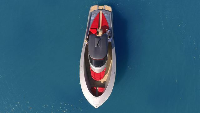 The designers also included details reminiscent of supercars, such as vents for the engine at the hips of the boat and hinged louvers that open as soon as the engines are fired up. The optional hardtop was aerodynamically designed to provide sun and wind protection without impacting performance. The first Alpha hull made available for purchase has already sold and Velez says a “longer and wider” second model is now in the works. “We’ve been getting calls from people asking where they can put their fishing rods,” says Velez. “We never want to be seen as a fishing boat. We designed after a vintage supercar and that’s the SV heritage we want to keep in all models.”