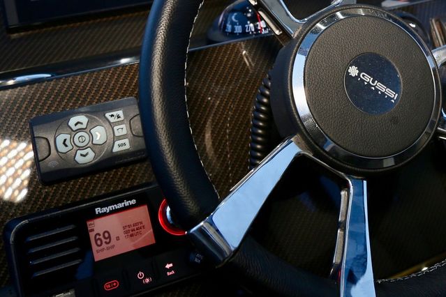The deck layout is the creation of the Greek designer Alexandros Liaskovitis and his Milan based studio, specialized in high luxury ambient that stand out for their incredible attention to detail. The hinge-point of the Technohull Omega 41 design is the modern center console, sheltered by a sporty T-top that perfectly protects the two wrap-around shockproof seats and can also mount solar panels. The cockpit features a state-of-the-art electronic console supported by a central monitor able to control all the devices on board easily.