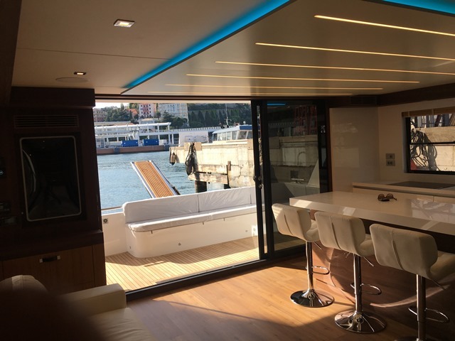 The 58 offers a true owners terrace at the bow providing private protected outdoor area for the owner.