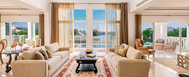 Enjoy living on the sea in an exclusive luxury villa with unobstructed views of the Mediterranean and the Marina. With the thrill of the city just moments away, you can relax in a beautiful setting, complete with your own private garden and swimming pool. Drive up to one door and sail away from another or simply step out onto the beach from your own garden. Peninsula Villas. Island Villas. Living on the sea.