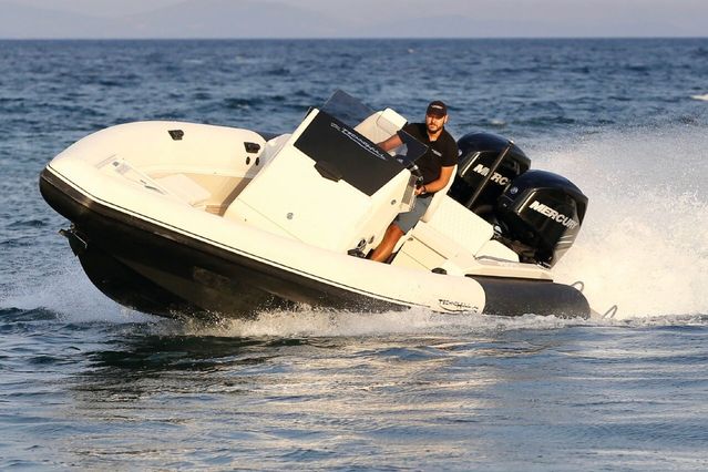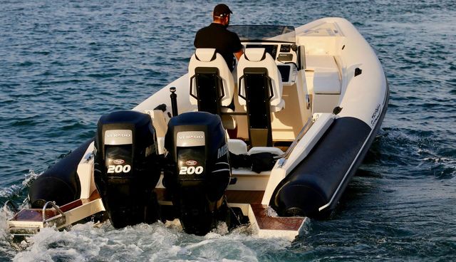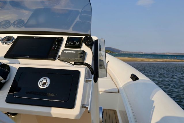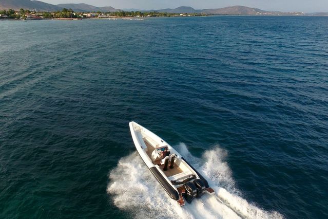 Performance and high efficiency make this the ideal RIB for those who want to take the weekend off and not worry about the distance to cover, primarily thanks to their ability to take on the most difficult weather and sea states in complete safety and comfort even with a numerous crew. Some examples? With the twin 200hp outboard option, it will only take two hours to cross from Athens to Mykonos Island, less than the time it often takes us just to get to the sea for a weekend. In the same two hours you can go from the Italian Argentario Peninsula to Porto Cervo in Sardinia, in the heart of the Costa Smeralda.