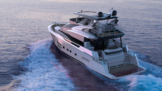 The Suprema X, which should be launched in 2019, has the same number of details, and offers three choices on the top deck. They include a hardtop with sun window or open T-top over the flybridge deck, or an enclosed skylounge. The T-Top (with retractable canvas for shade) and hardtop options will provide maximum exposure to wind and sun, while the enclosed skylounge allows for a single helm station. That gives the owner the choice of losing the wheelhouse on the main deck and using that space for an extra-large saloon.