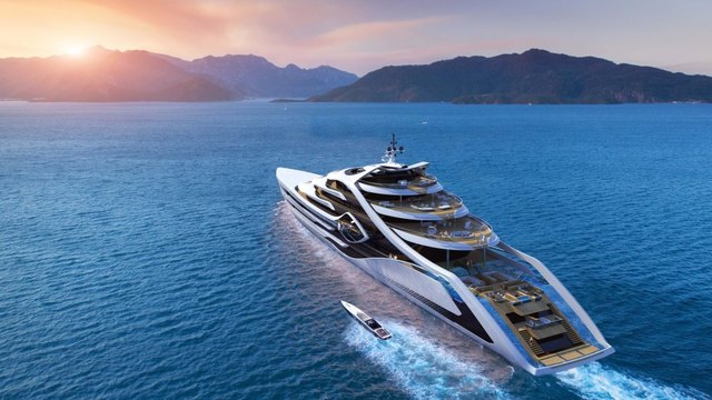 British designer Andy Waugh has announced his latest yacht concept. The impressive 574-foot eight-deck motor yacht is destined to push boundaries—not only in style but in efficiency, too. Designed to challenge preconceptions about a yacht of its size, its elegant lines are complemented by the finishing touches throughout.