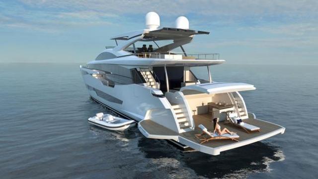 The Pearl 95 also includes a Jet Ski and tender garage which can be opened to reveal a beach club and bar.