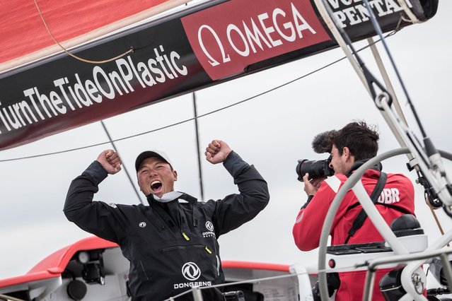 The Chinese-backed team were in third place going into the final 'sprint' leg but they outpaced their nearest competitors, MAPFRE and Team Brunel, to secure overall victory, with Dutch sailor Carolijn Brouwer and France's Marie Riou crossing the line off The Hague to clinch the last leg.
