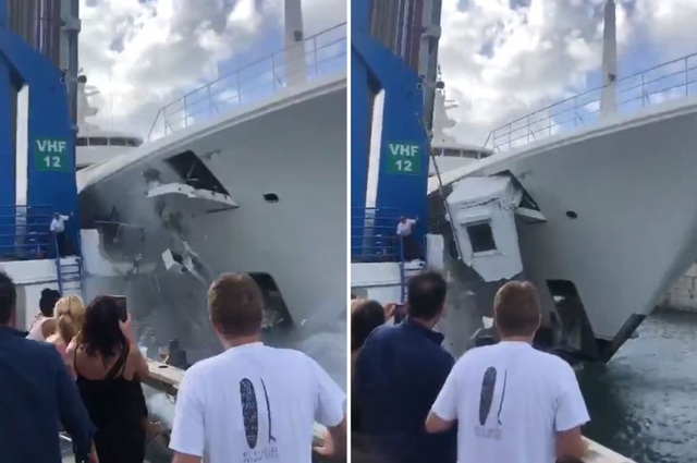 MASSIVE OUT OF CONTROL SUPER YACHT THAT ONCE BELONGED TO ROMAN ABRAMOVICH ACCIDENTALLY RIPS CARIBBEAN DOCK APART