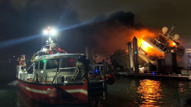 'MARC ANTHONY'S' 120FT LUXURY YACHT GOES UP IN FLAMES AND SINKS